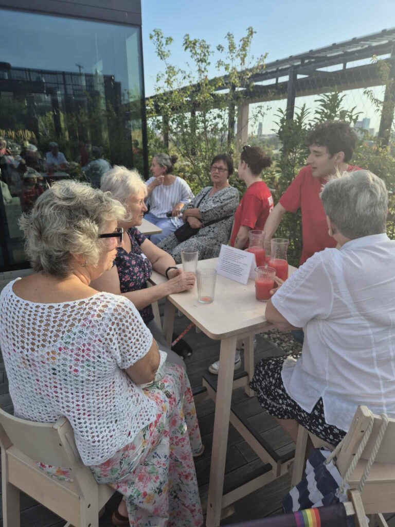 Na zaproszenie ekipy CD Projekt RED, Seniorzy z klubu „Silver Stars” wraz z Izabella Polichnowska oraz Agnieszka Tobota odwiedzili nową siedzibę firmy. Po zwiedzeniu niesamowitego i ekologicznego budynku seniorzy i pracownicy firmy zaangażowani w wolontariat pracowniczy, rozmawiali o dzisiejszych i dawnych zawodach, o różnicach w wymaganiach, w zatrudnieniu i warunkach pracy wczoraj i dziś. Czekał na nas również pyszny poczęstunek, a na koniec wspólnie, na dachu siedziby CD Projekt RED, wszyscy zatańczyli „Taniec przeciwko przemocy”. Rozmowy, wspomnienia i taniec wspaniale łączą pokolenia 😊