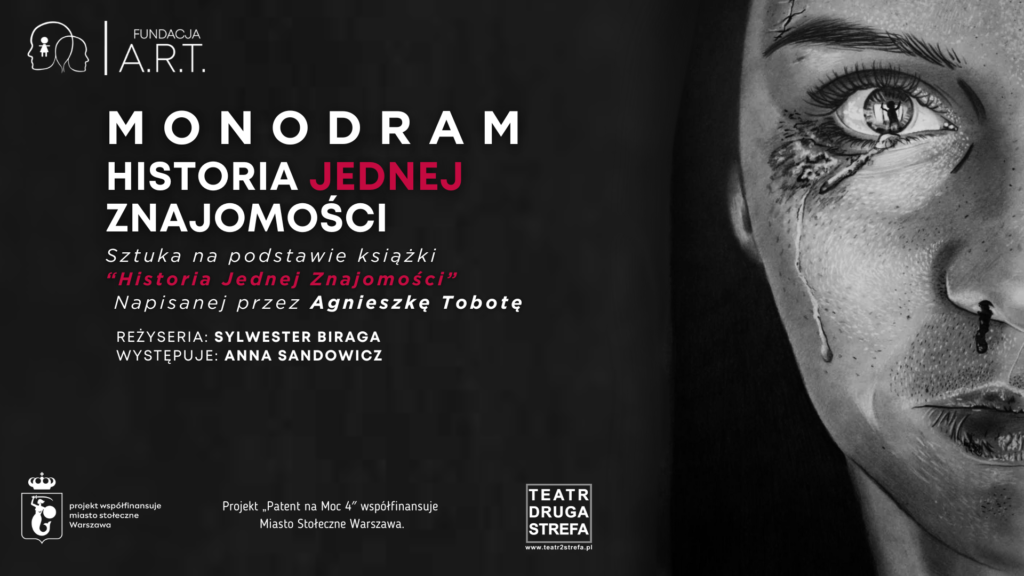Monodram „Historia jednej znajomości” jest częścią kampanii społecznej realizowanej w ramach projektu „Patent na MOC 4”, współfinansowanego przez m.st. Warszawa. Celem kampanii jest przełamywanie milczenia, obalanie mitów o przemocy i budowanie społecznej odpowiedzialności wobec osób doświadczających przemocy.